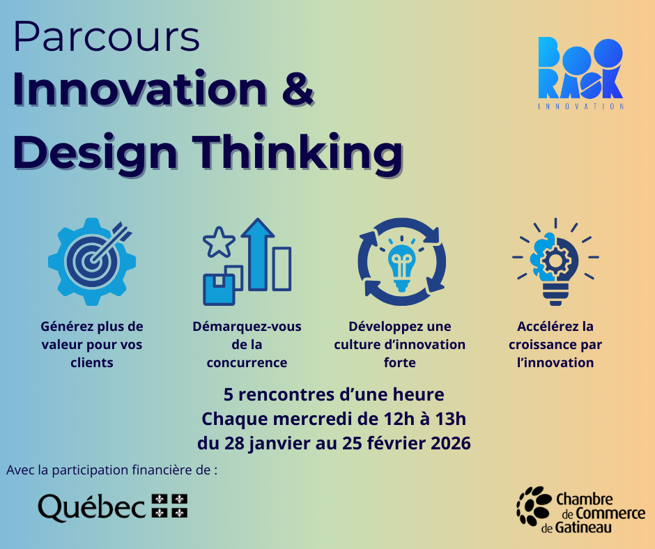 Passez à la vitesse supérieure : maîtrisez l’innovation et le design thinking avec notre NOUVEAU parcours animé par Boorask Innovation!